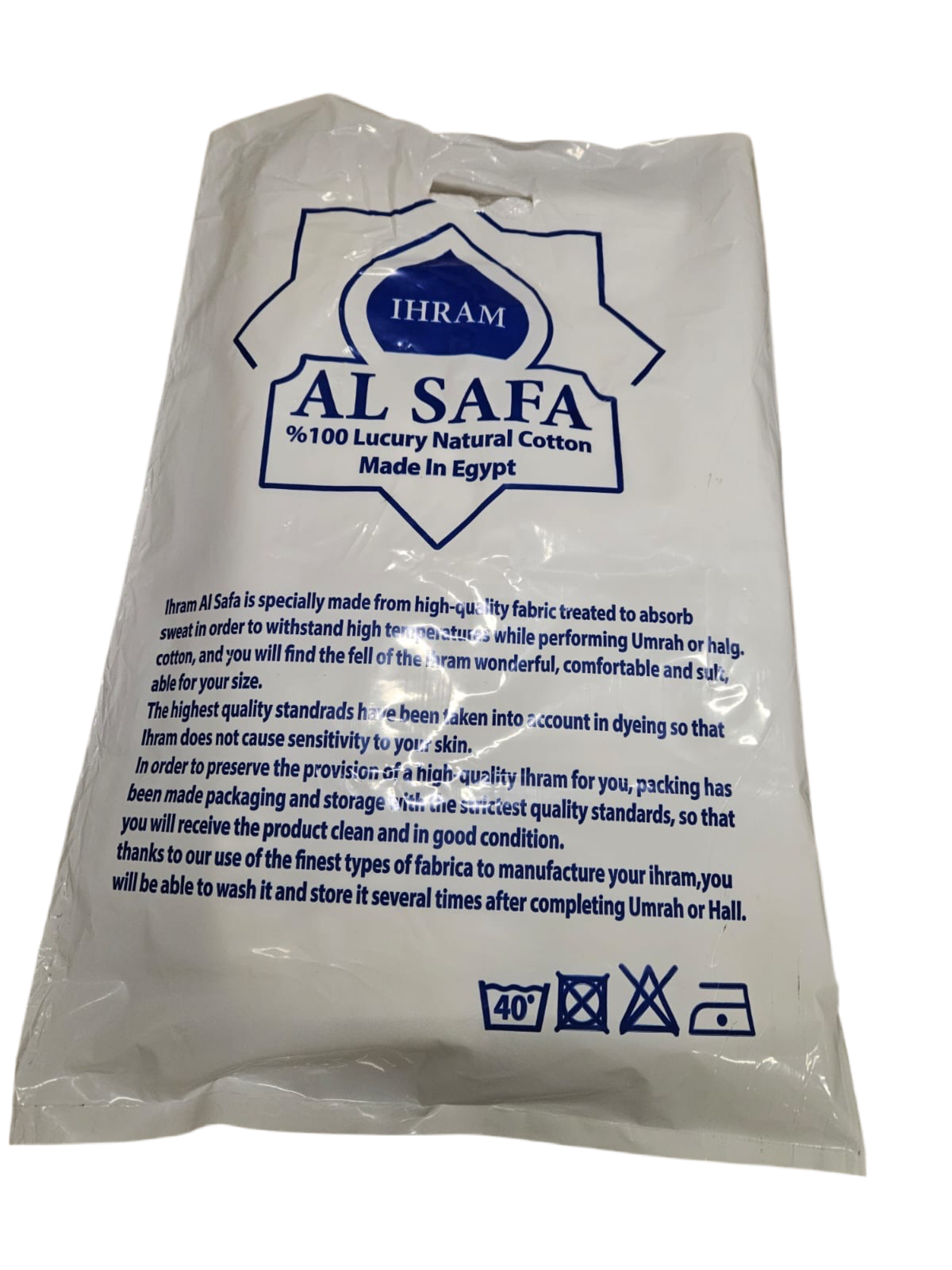 Om de kwaliteit van uw ihram te waarborgen, wordt deze verpakt en opgeslagen volgens strikte kwaliteitsstandaarden. Zo ontvangt u het product schoon en in uitstekende staat.