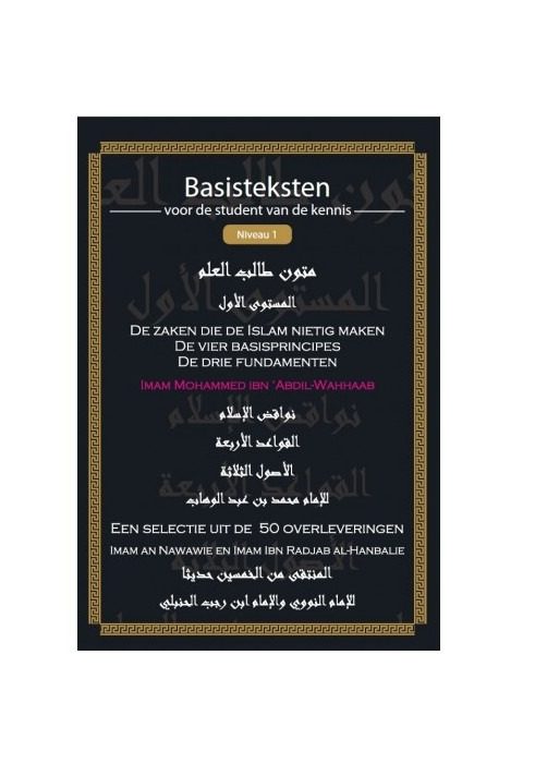 Wil je, je gaan verdiepen in de islam? Dan is dit boek ideaal. Dit is niveau 1 van basisteksten voor de student van de kennis. Het boek behandeld de vier basisprincipes, de drie fundamenten en de zaken die de islam nietig maken. Verder is er ook een selectie uit de 50 overleveringen van Imam An-Nawawie en imam Al Hanbali.