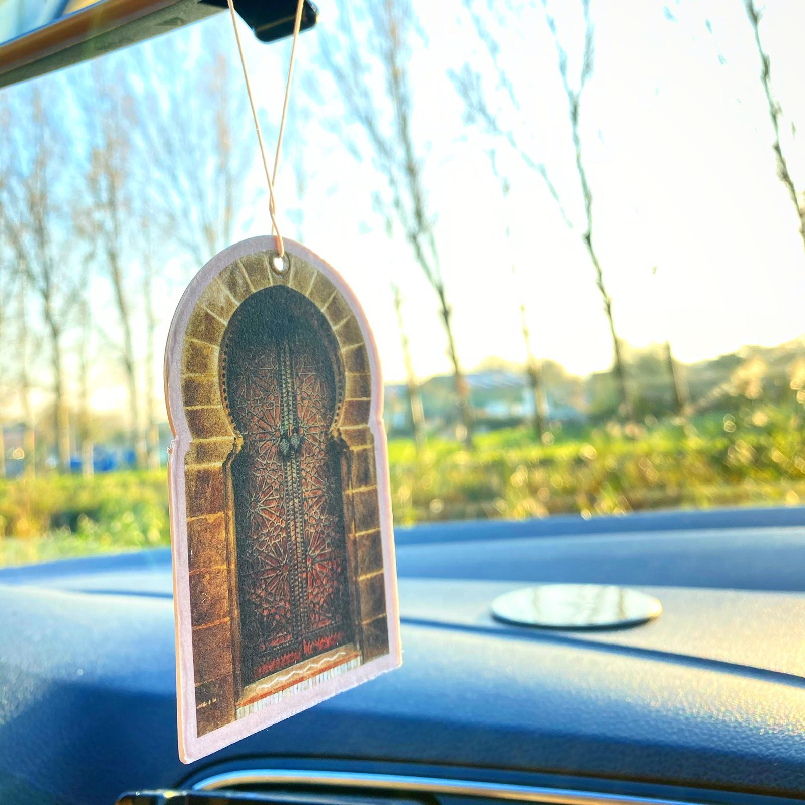 Super leuk autogeurtje in de vorm van een Marokkaanse boogdeur in het mooie Agadir. Het is aan 1 kant bedrukt met de afbeelding en aan de andere kant is het een 1-kleurige bedrukking zonder afbeelding. De geur die erbij komt is Citroen!