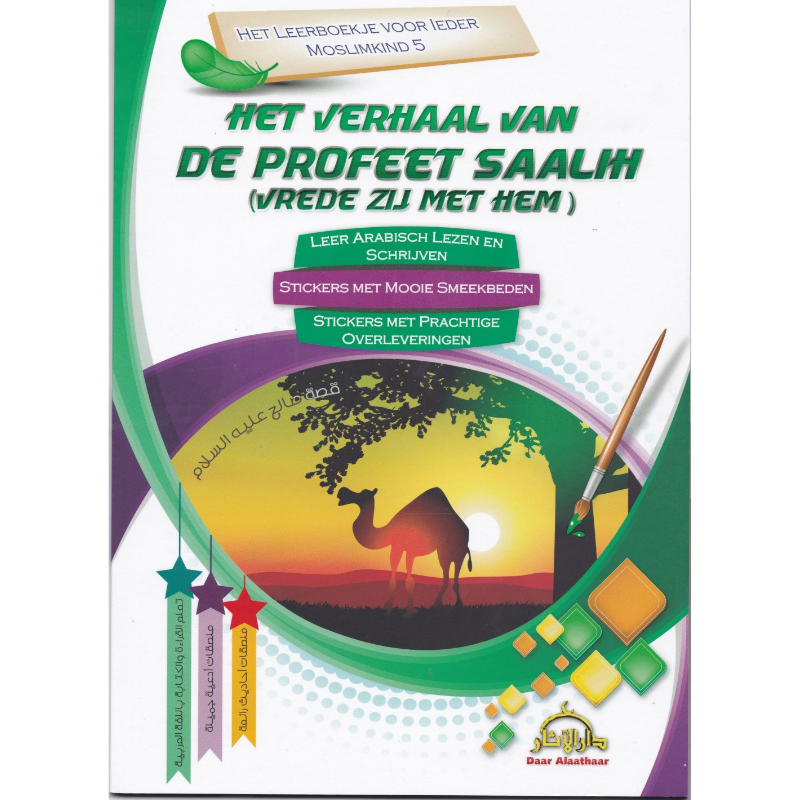 Titel: Het leerboek voor ieder moslimkind 5Dit boek bestaat uit drie delen:1. Het verhaal van de profeet Saalih vrede zij met hem2. Leer Arabisch lezen en schrijven3. Stickers met smeekbeden en overlevringen