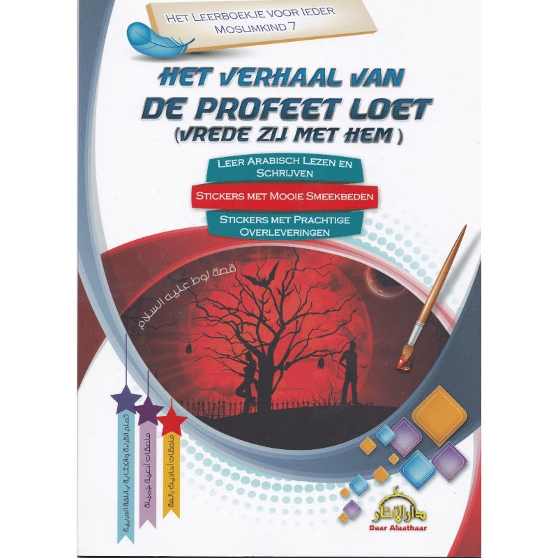 Titel: Het leerboek voor ieder moslimkind 7Dit boek bestaat uit drie delen:1. Het verhaal van de profeet Loet vrede zij met hem2. Leer Arabisch lezen en schrijven3. Stickers met smeekbeden en overlevringen