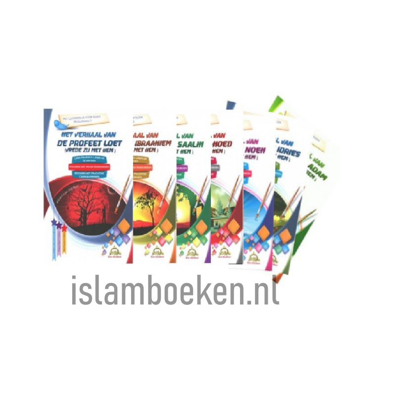 Het leerboekje voor ieder moslimkind voordeelbundel7 delige voordeelbundel nu voor een scherpe prijs.Uit elke deel leer je Arabisch lezen en schrijven, en vind je sticker met smeekbeden en prachtige overleveringen.De delen bestaan uit: De Profeet Adam (v.z.m.h.) De Pofeet Idries (v.z.m.h.) De Profeet Noeh (v.z.m.h.) De Profeet Hoed (v.z.m.h.) De Profeet Saalih (v.z.m.h.) De Profeet Ibraahiem (v.z.m.h.) De Profeet Loet (v.z.m.h.)