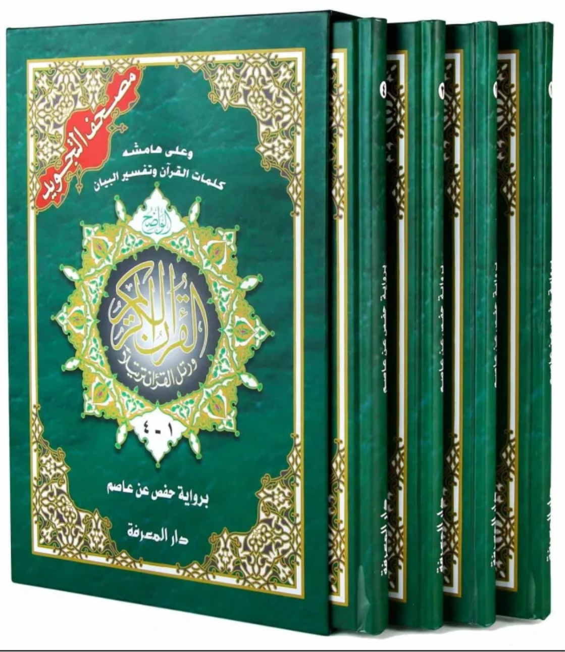 Ervaar het gemak en de elegantie van onze Tajweed Quran-set. Deze unieke verzameling bevat de complete Koran, verdeeld over vier compacte volumes. De indeling maakt het ideaal voor zowel het memoriseren als het gericht bestuderen van de Koran, zonder het gewicht van een groot, zwaar boek. Elk volume is zorgvuldig ontworpen voor optimale draagbaarheid en leesbaarheid, zodat u zich moeiteloos kunt verdiepen in uw spirituele reis.