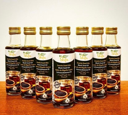 Biologische Zwarte Zaad Olie op pure basis. De olie is vers geperst door het Merk Shifa. Zij hebben ook de vereiste certificaten om dit te doen.